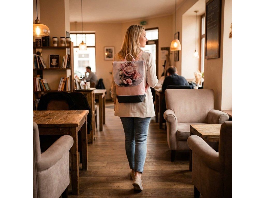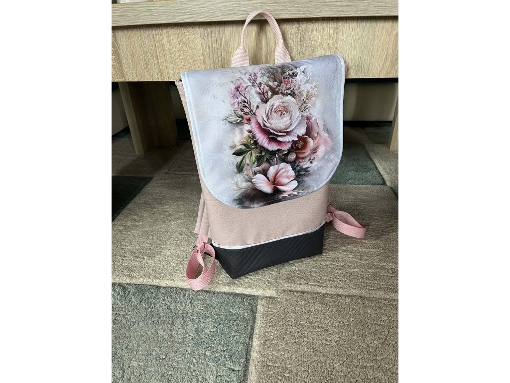 Dámský batoh v pastelových barvách s motivem růží