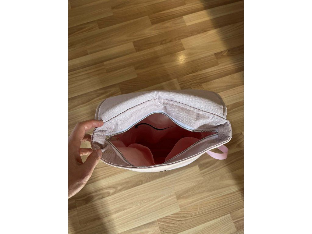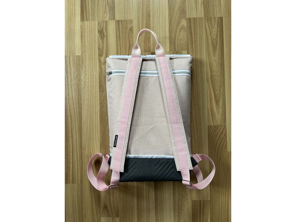 Batoh Jje ušity z voděodolné batohoviny melírované starorůžové barvy a klopa je ušitý z panelu s růžemi. Na zadní straně batohu je velká kapsa na zip, kam schováte peněženku, klíče nebo telefon. Vše důležié máte dobře schované a nikdo se Vám na vaše věci, když budete mít batoh na zádech nedostane.