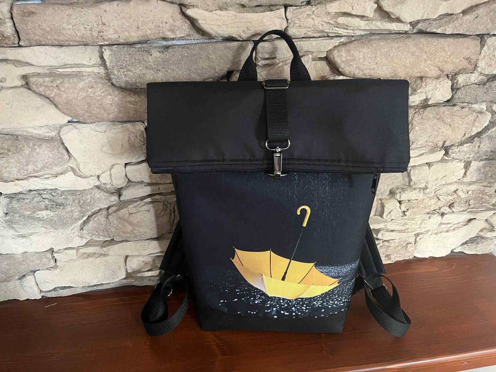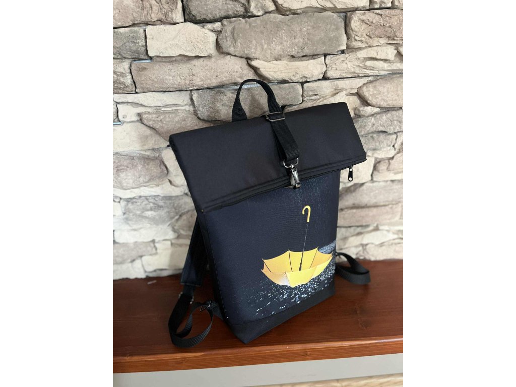 Rolovací/překlápěcí batoh v maxi velikosti - žlutý deštník