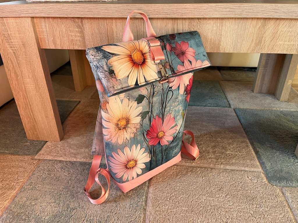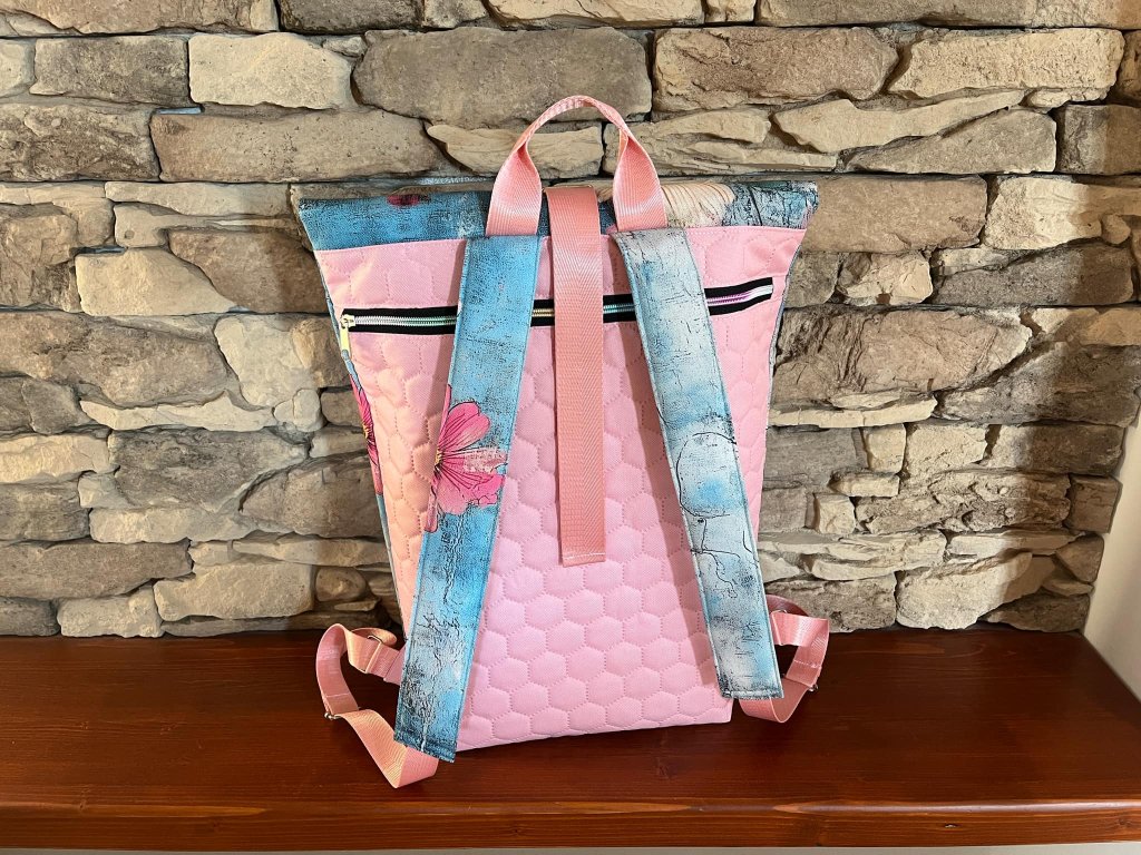Rozměry: výška překlopeného batohu 45 cm, výška vyrolovaného batohu cca 54 cm, šířka 34 cm