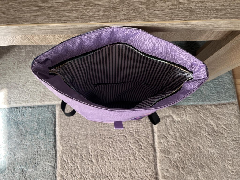 uvnitř batohu a na zadní straně batohu menší kapsa na zip pro uložení telefonu, peněženky, klíčů nebo jiných drobností